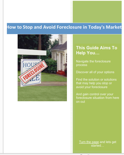 Download the Free Foreclosure Guide by entering your information to the right. We’ll email you the pdf of the guide so you can go through it at your own leisure. You’ll also receive other tips and help from our Foreclosure Avoidance team to help you make a well informed decision.